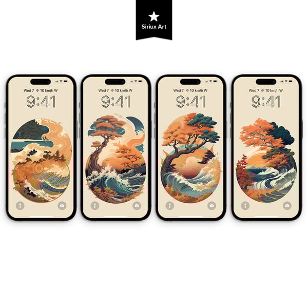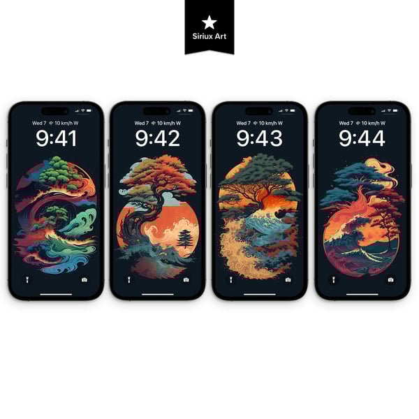 Water Earth Fire and Air Ukiyo-e Light Oriental Art Phone Wallpaper