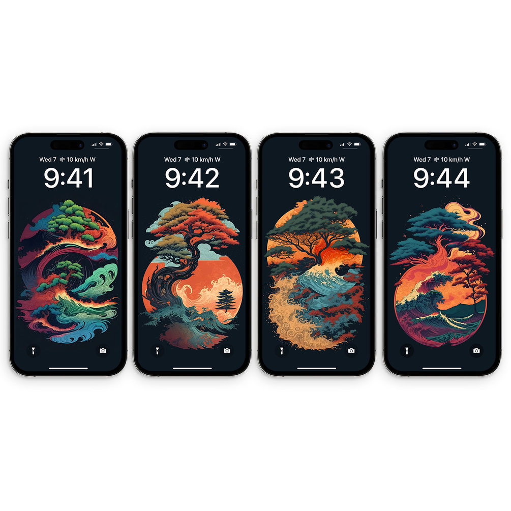 Water Earth Fire and Air Ukiyo-e Dark Oriental Art Phone Wallpaper